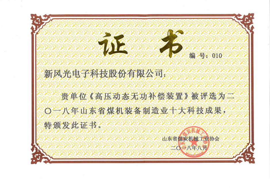 山東省煤機裝備制造業(yè)2018年科技成果獎