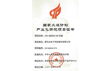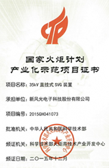 SVG國家火炬計劃-產(chǎn)業(yè)化示范項目證書(shū)