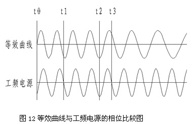 圖12是依據τp=20s的系統的電動(dòng)機感應電動(dòng)勢的等效曲線(xiàn)與工頻電源的相位比較圖。