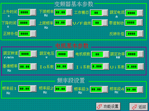 本地設置:通過(guò)薄膜式液晶屏設置運行頻率。