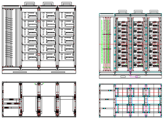 隨著(zhù)高壓變頻器市場(chǎng)規模的不斷擴大,用戶(hù)對變頻的苛求也越來(lái)越嚴格。作為產(chǎn)品開(kāi)發(fā)商,也不斷為提升產(chǎn)品質(zhì)量與檔次作著(zhù)不懈努力,所用柜體也由原來(lái)的單一種類(lèi)向更寬范方向發(fā)展,其產(chǎn)品功能、質(zhì)量與外形都在不斷升級。同規格變頻器原體積如圖(4)。其單元結構排布也有了更新的認知,由于原來(lái)每相豎排所用電纜多、結構復雜、附加成本大,便改為每相單元橫排,使變壓器次級引線(xiàn)分別對應A、B、C三相,不再有接線(xiàn)柜,直接通過(guò)電纜托板到達各單元,不再迂回,其控制柜也由原來(lái)的600mm轉為400mm。另一個(gè)飛躍則是每相單元數量的減少,如10kV改為8單元/相,6kV改為5單元/相。功率單元數量少了,其整機質(zhì)量并沒(méi)有受到影響,相反其故障點(diǎn)卻相應減少,加之電路結構上星點(diǎn)漂移技術(shù)的應用,使得變頻器性能更加優(yōu)越。功率柜具體排布情況,6kV5個(gè)單元,每相橫向分布,上、中、下三相如圖(5)所示。10kV如果采取單元前后放置,每相前4后4,如圖(6)所示: