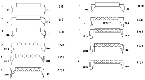 從圖3衰減情況看,A-F的屏蔽效果不好,若必須采用兩端接地,則應采用C或F的形式。G-K的屏蔽效果要好的多,但K一般不建議選用,因為在屏蔽層上的任何噪聲電流和電壓都可作用到信號線(xiàn)上。100Ω(始端)直接接地是不合適的,因為兩端接地為地環(huán)路提供了分流,使磁場(chǎng)屏蔽性能下降。