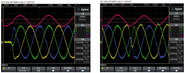 圖5 零電流~正額定電流響應速度測試波形 圖6 正額定電流~負額定電流響應速度測試波形